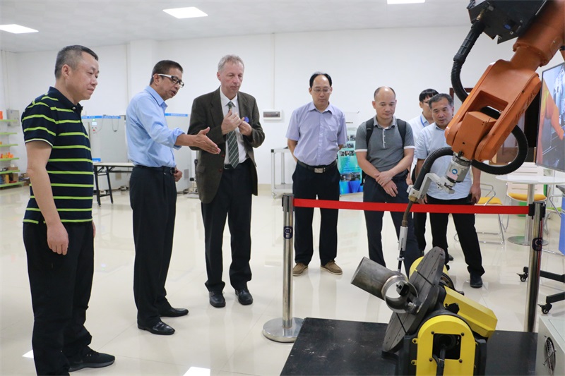 圖為匈牙利方參觀我院的工業(yè)機(jī)器人實(shí)驗(yàn)室