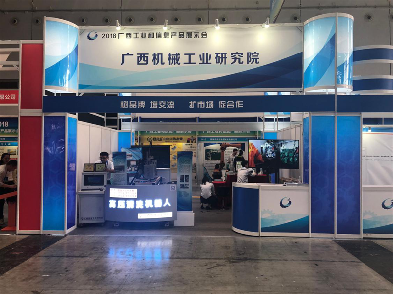 我院參展的14號館“綜合·高質量發(fā)展成果展示廳”,是展示廣西企業(yè)創(chuàng)新創(chuàng)業(yè)、工業(yè)綠色高效發(fā)展、產業(yè)轉型升級、高新技術等成就的窗口,我院的高壓清洗機器人系統(tǒng)和智能咖啡吧作為各種展會的明星??停舜我彩⒀b登場。其中,我院的高壓清洗機器人系統(tǒng)獲得工信部2015年國內首臺套重大裝備的認定,連續(xù)兩次獲得廣西發(fā)明創(chuàng)造成果展覽交易會金獎,現(xiàn)在該設備已經廣泛地產業(yè)化,在廣西、新疆、云南等地都有應用,甚至已經出口到國外,市場前景看好。展會開幕式結束后,自治區(qū)副主席費志榮、自治區(qū)工信委主任莫樺蒞臨我院展廳指導,對我院產品表示了熱切的關注,并表示有機會要到我院進一步了解。這是繼5月份我院參加自治區(qū)科技廳主辦的“兩周兩展”以來,在展會上再次得到自治區(qū)領導的關注和指導。