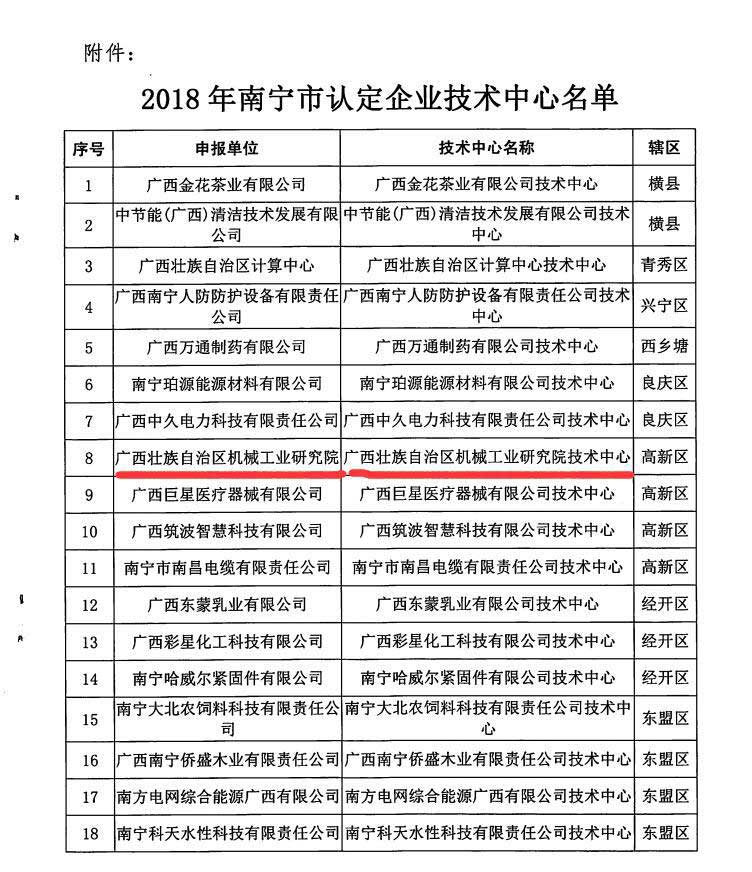 近日,南寧市工業(yè)和信息化委員會(huì)公布了2018年南寧市企業(yè)技術(shù)中心名單(南工信科技〔2018〕15號(hào)),我院登榜其中,喜迎2019年開門紅。