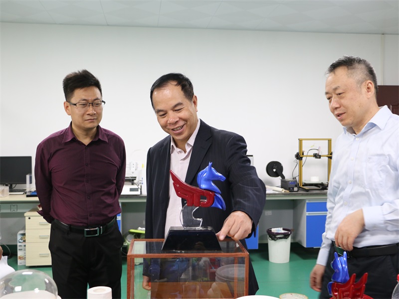 圖5 座談會(huì)前南寧師范大學(xué)李文敬院長(zhǎng)一行參觀機(jī)械院公司實(shí)驗(yàn)室