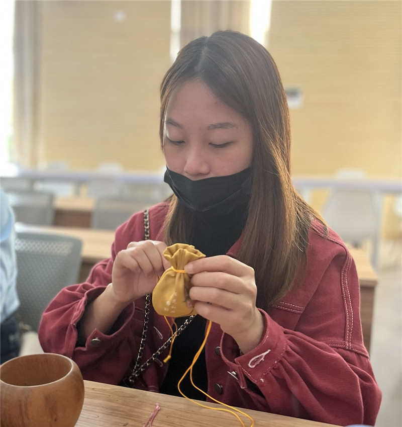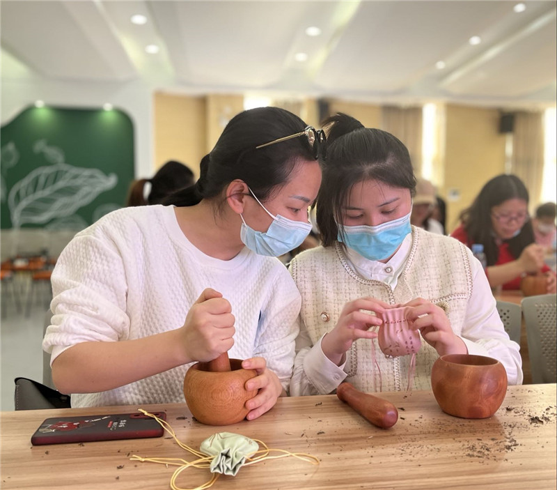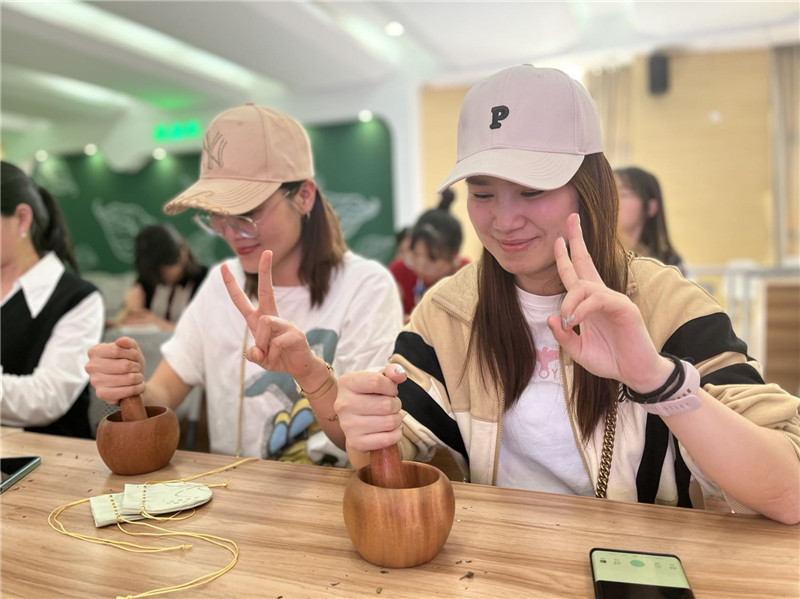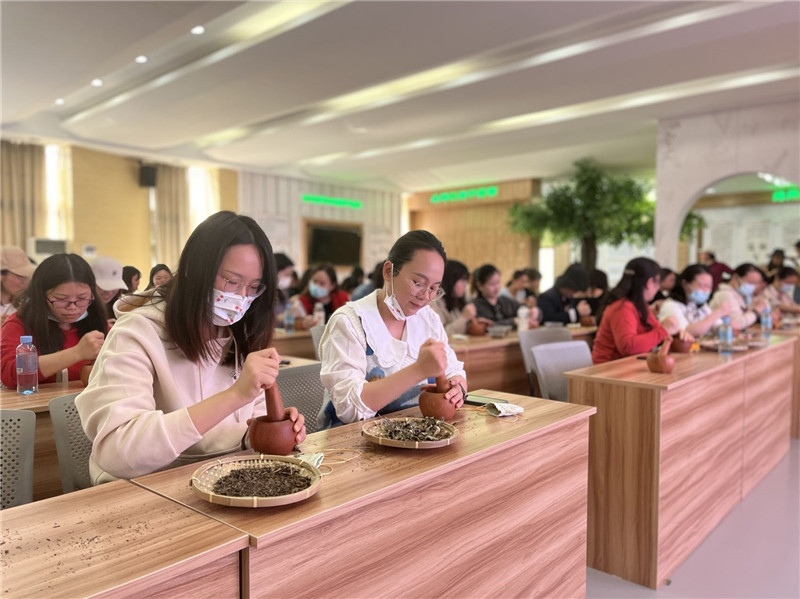 “吳茱萸芳香去濕、疏肝理氣,薄荷可以提神醒腦,大家隨身佩戴,可以在人體周圍形成高濃度的小環(huán)境......”在指導(dǎo)老師的解說(shuō)中,女職工們一起認(rèn)識(shí)了艾葉、薄荷、紫蘇、吳茱萸、花椒等草藥,以及每種草藥的獨(dú)特功效,并通過(guò)動(dòng)手實(shí)踐,制香、聞香,更生動(dòng)地認(rèn)識(shí)藥用植物與養(yǎng)生知識(shí)、傳統(tǒng)文化的關(guān)聯(lián)。