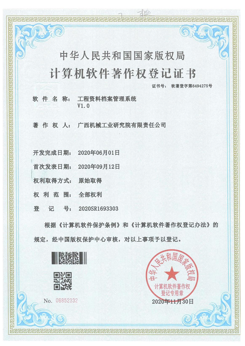 機(jī)械院與新祥公司聯(lián)合開(kāi)展《公路建設(shè)項(xiàng)目電子檔案驗(yàn)收的研究應(yīng)用》課題研究,開(kāi)發(fā)公路電子檔案智慧驗(yàn)收輔助系統(tǒng),并申請(qǐng)了系統(tǒng)軟件著作權(quán)。