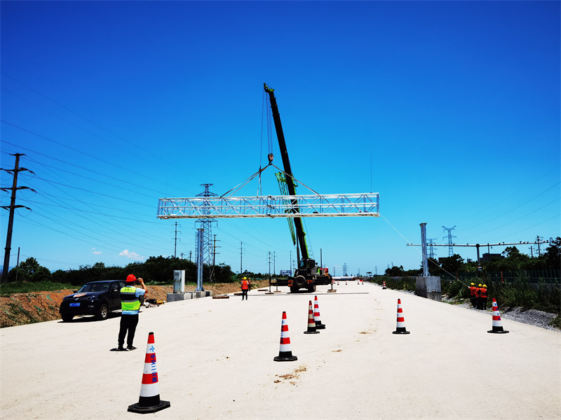 桂柳四改八ETC門架工程項(xiàng)目首個(gè)4+1門架順利吊裝