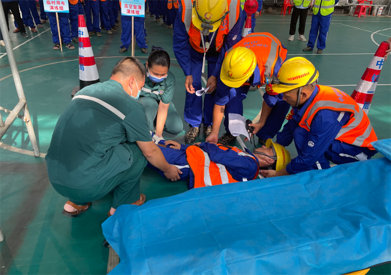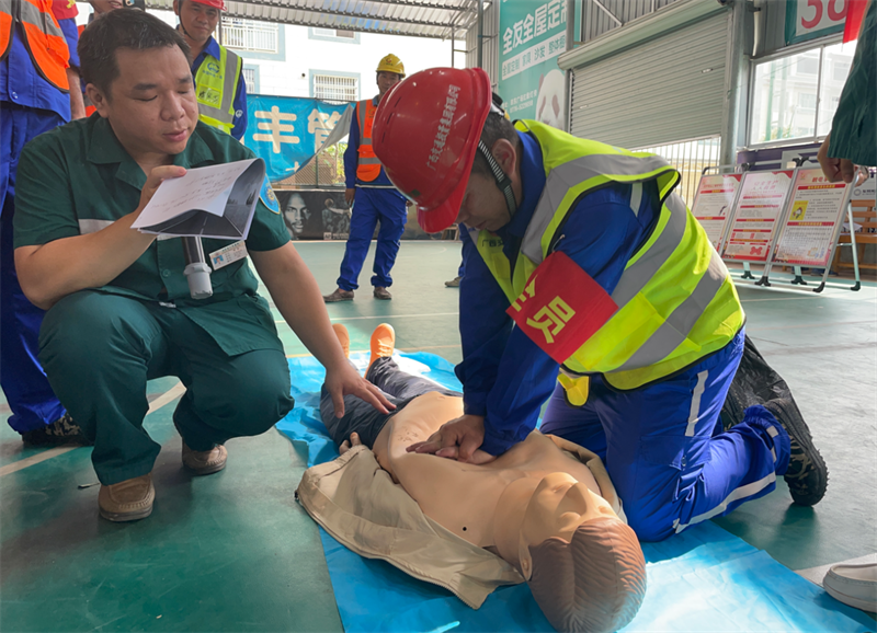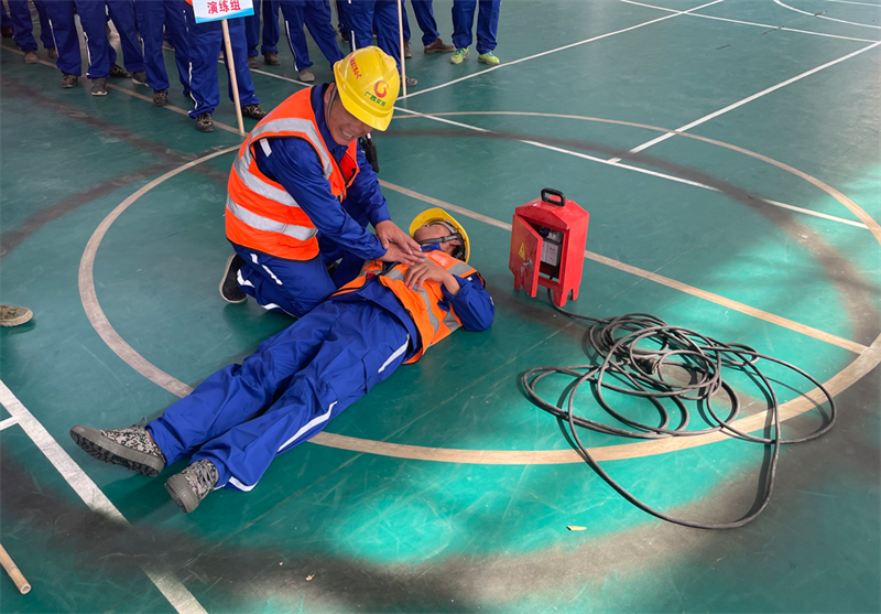 活動(dòng)現(xiàn)場(chǎng),項(xiàng)目部安全總監(jiān)對(duì)綜合應(yīng)急救援演練方案進(jìn)行了詳細(xì)的講解。參訓(xùn)人員分組對(duì)施工中常見(jiàn)的觸電、高處墜落應(yīng)急救援、觸電事故應(yīng)急救援、各類消防器材的使用進(jìn)行了演練。醫(yī)護(hù)人員現(xiàn)場(chǎng)示范了中暑急救、胸外擠壓急救措施、人工呼吸方法、骨傷綁扎固定等應(yīng)急救援措施。通過(guò)形象生動(dòng)地講解示范和實(shí)踐演練讓參訓(xùn)人員深刻理解應(yīng)急救援知識(shí),掌握急救措施,提升事故防范處理能力,有效防范安全事故發(fā)生。