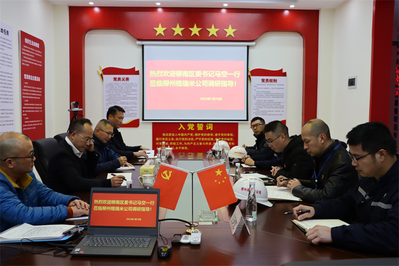 1月16日,臨近春節(jié),柳州市柳南區(qū)委書記馬空率隊到柳州格瑞米公司看望慰問企業(yè)員工,為公司員工送上新春祝福,并開展春節(jié)前安全檢查及工作調(diào)研,柳南區(qū)應(yīng)急管理局、柳南區(qū)工信局負(fù)責(zé)同志陪同調(diào)研。