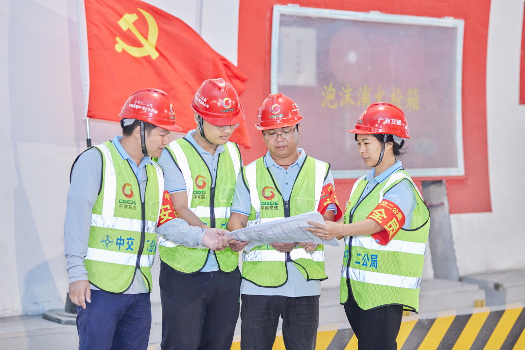 在機(jī)電、交安等建設(shè)項(xiàng)目工地上,鮮艷的黨旗迎風(fēng)飄揚(yáng),紅色動(dòng)力強(qiáng)勁涌動(dòng)。